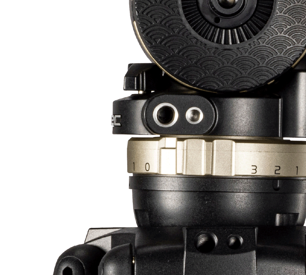 To ensure reliable and long-lasting use in harsh operating environments, we have changed the materials of various parts and redesigned the internal structure. Durability during prolonged use has been improved, and the fixing force of the slide plate and the locking force of the pan and tilt have been significantly increased. Furthermore, the click feel of each drag dial has been enhanced, and has been visibility improved by adding indicator marks to the counterweight knob and drag dials.